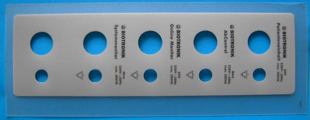 ![]() ![]() Die Frontfolien werden von uns auf der Rückseite bedruckt. Dadurch besteht auch bei langjährigem Einsatz kein Risiko durch verkratzen oder abreiben der Farbe. Die Folien sind selbstklebend beschichtet und können somit von Ihnen leicht auf Gehäuse oder Metallfrontplatten geklebt werden. Frontfolien ermöglichen die Herstellung von robusten Oberflächen in modernen und kundenspezifischem Design. Auch kleine Stückzahlen sind lieferbar. |